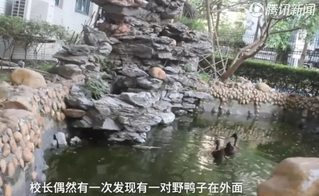 袁卫星告诉记者,第一实验学校有开展生命教育的传统,校园里原先也有兔子、乌龟等动物,又考虑到很多学生在城市长大,可能没见过鸭子,开学后袁卫星将两只鸭子带到学校,在校园鱼池养起来。