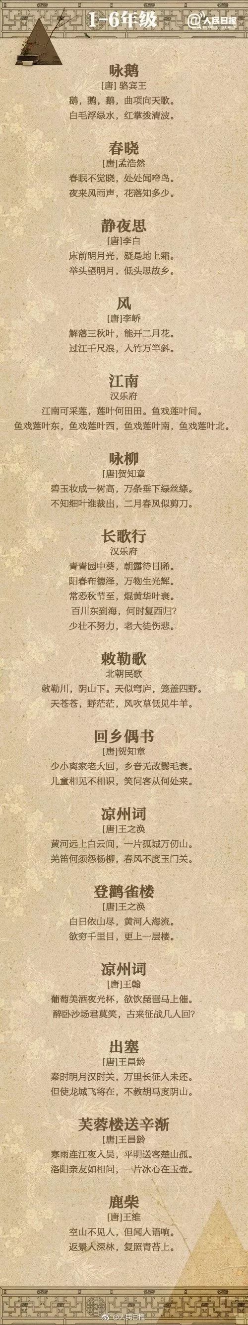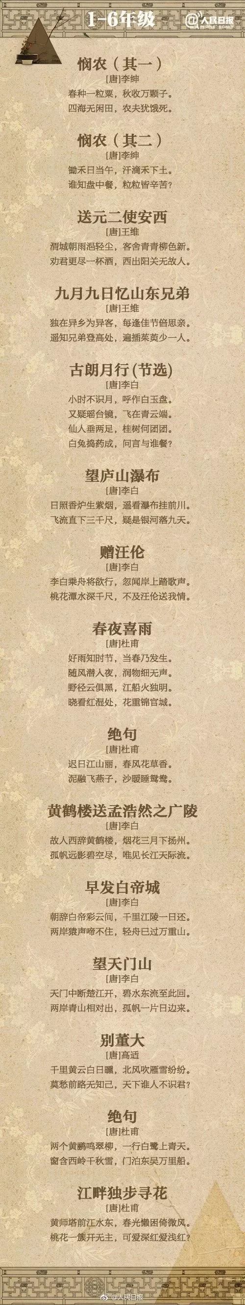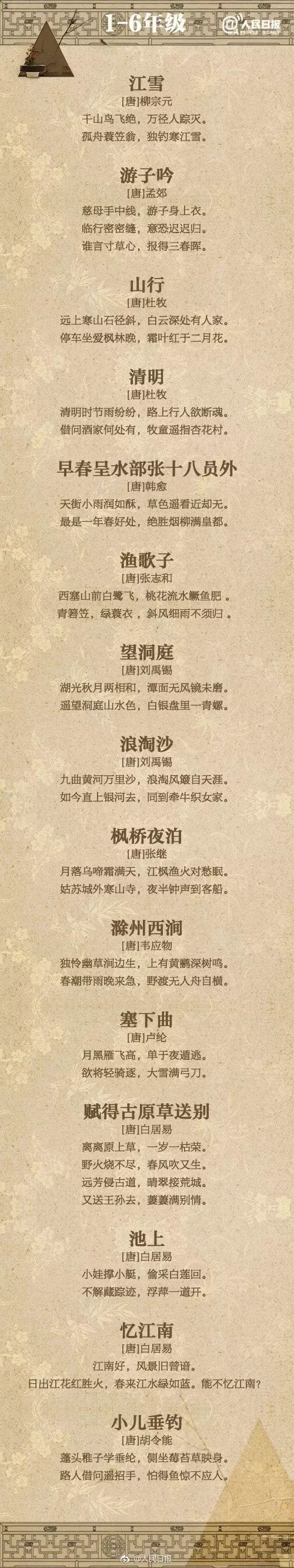 人民日报最近整理了义务教育阶段135首必背古诗文,非常齐全。老师、家长们让孩子背起来吧!