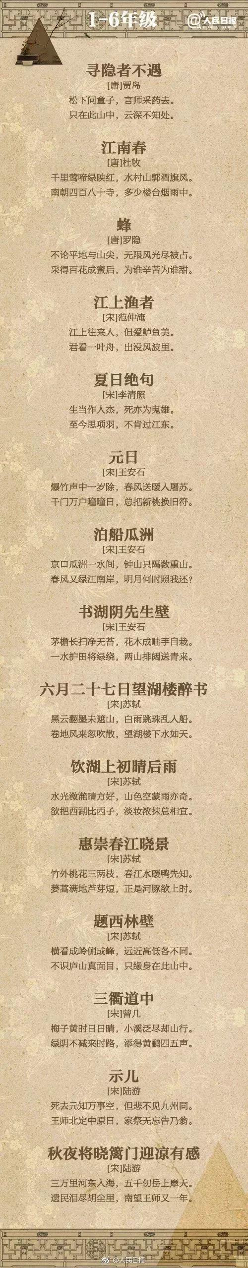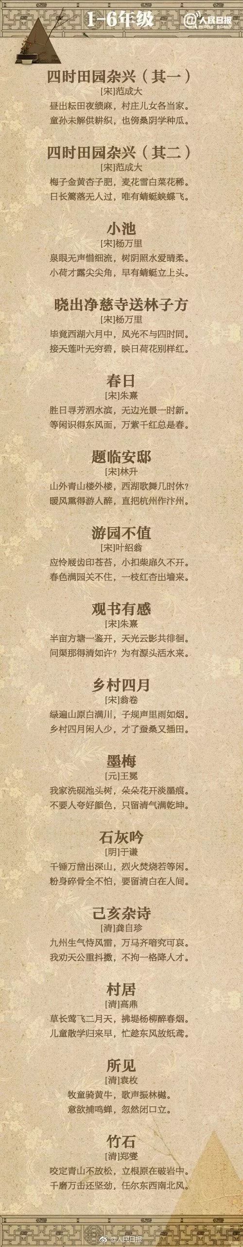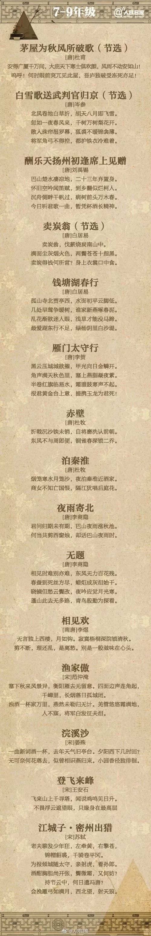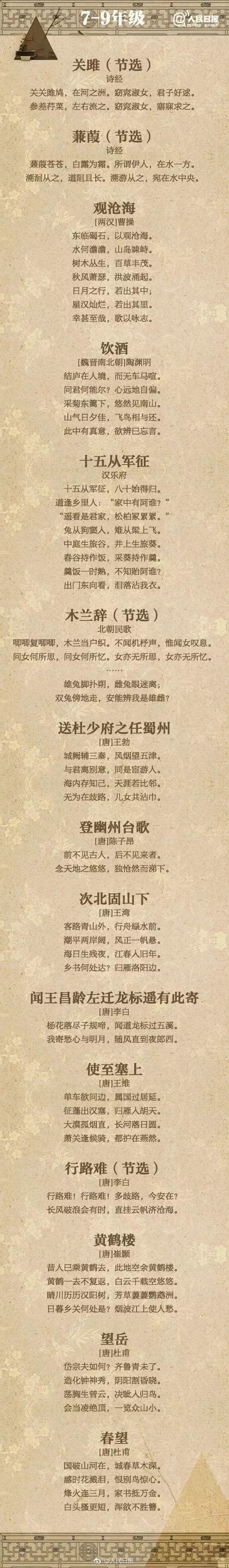 人民日报最近整理了义务教育阶段135首必背古诗文,非常齐全。老师、家长们让孩子背起来吧!