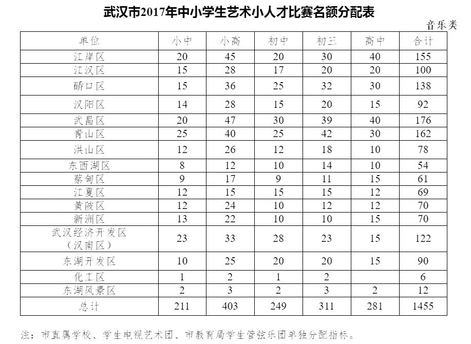 从2017年不难看出,名额分配武昌区总数最多。