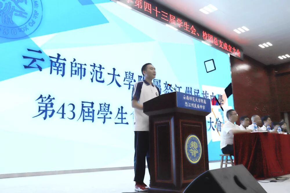 10月14日晚,云南师范大学附属怒江州民族中学在郁文阁举行第四十三届学生会、校团总支成立大会。学校副校长孙加云、副校长鲍学良,学生处、校团委老师及高中部各班班委和新一届学生会全体成员参加会议。会议共分为四项议程,由学生处刘德武老师主持。