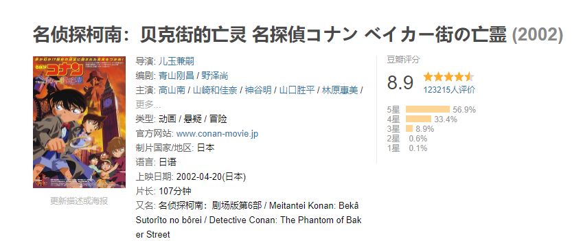 《名侦探柯南:贝克街的亡灵》(2002),豆瓣评分8.9。