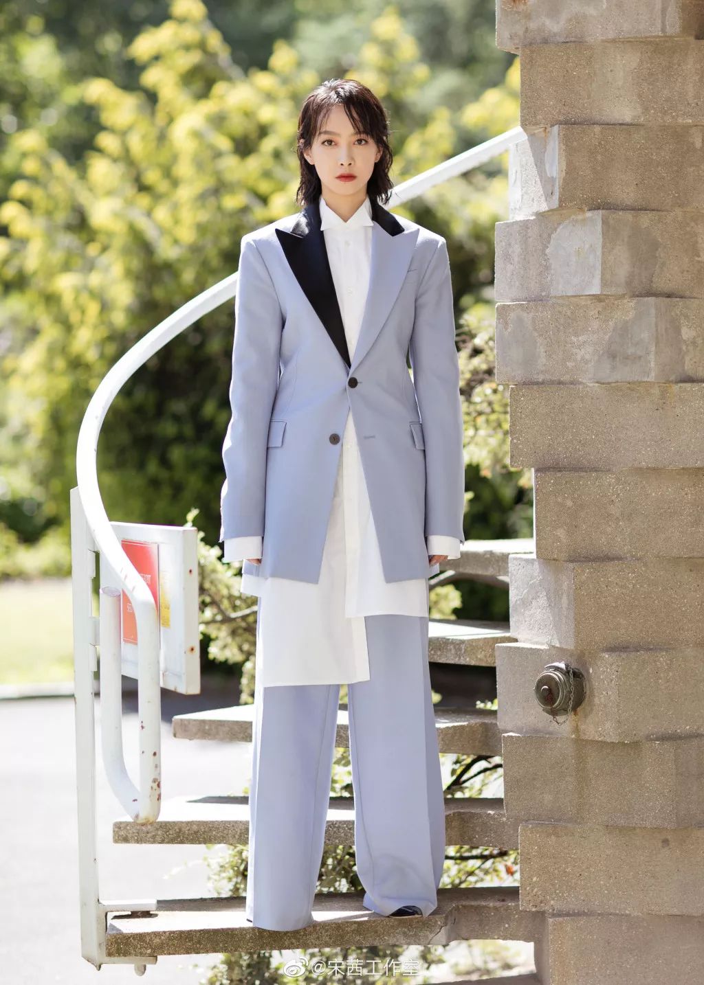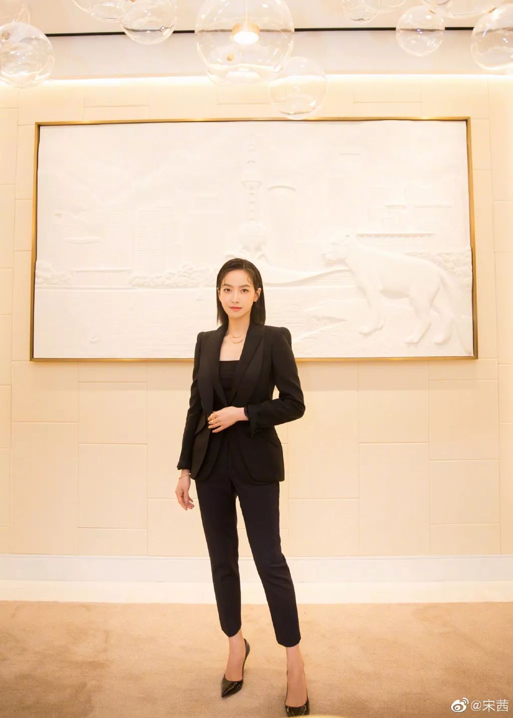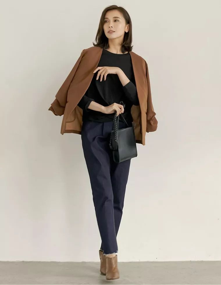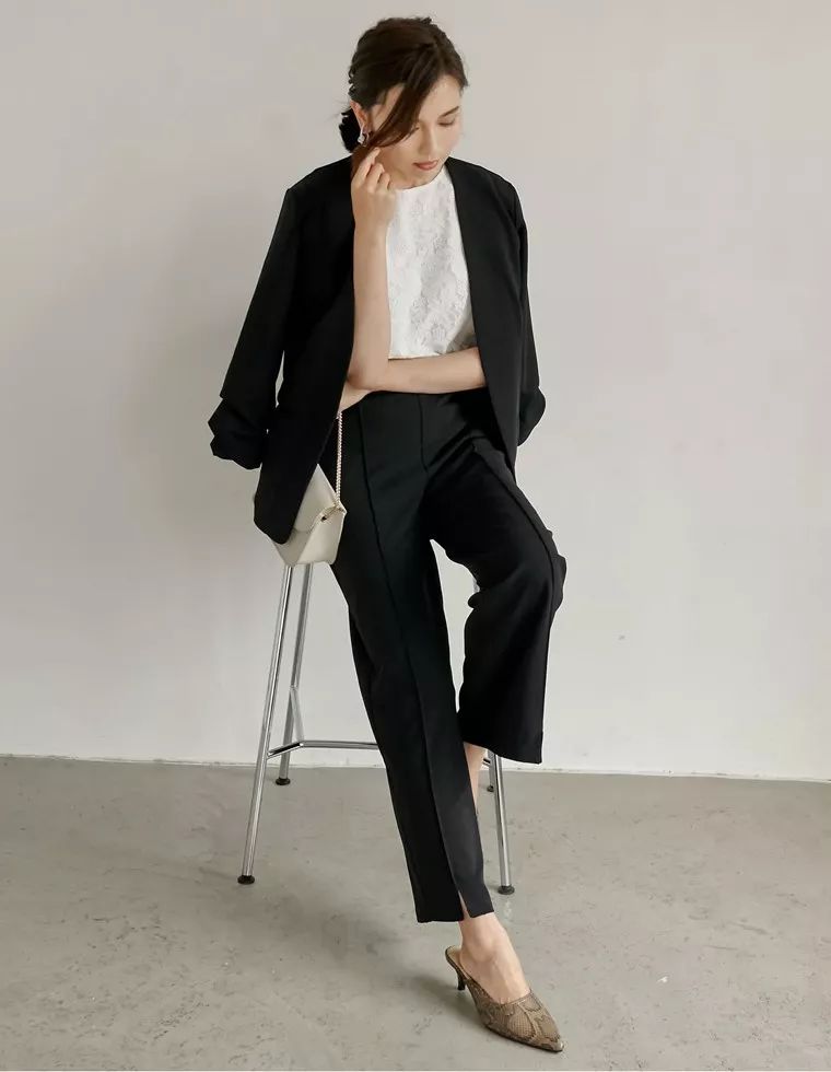 黑色套装内搭也是黑色,把帅气利落发挥到满分!