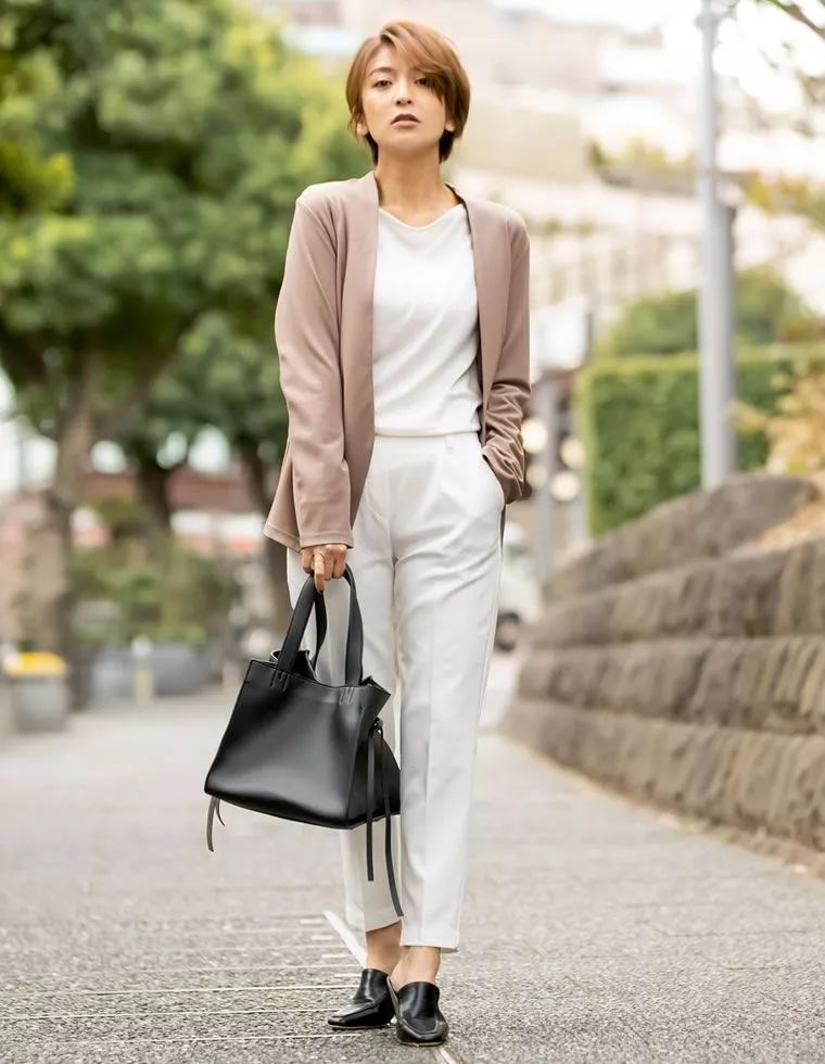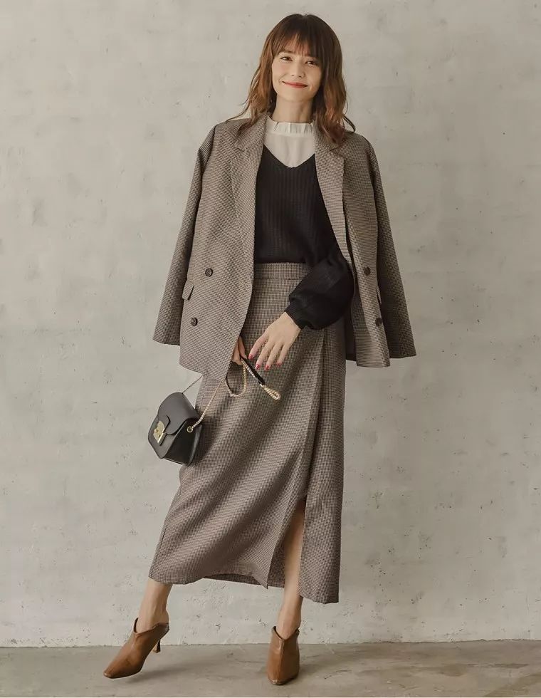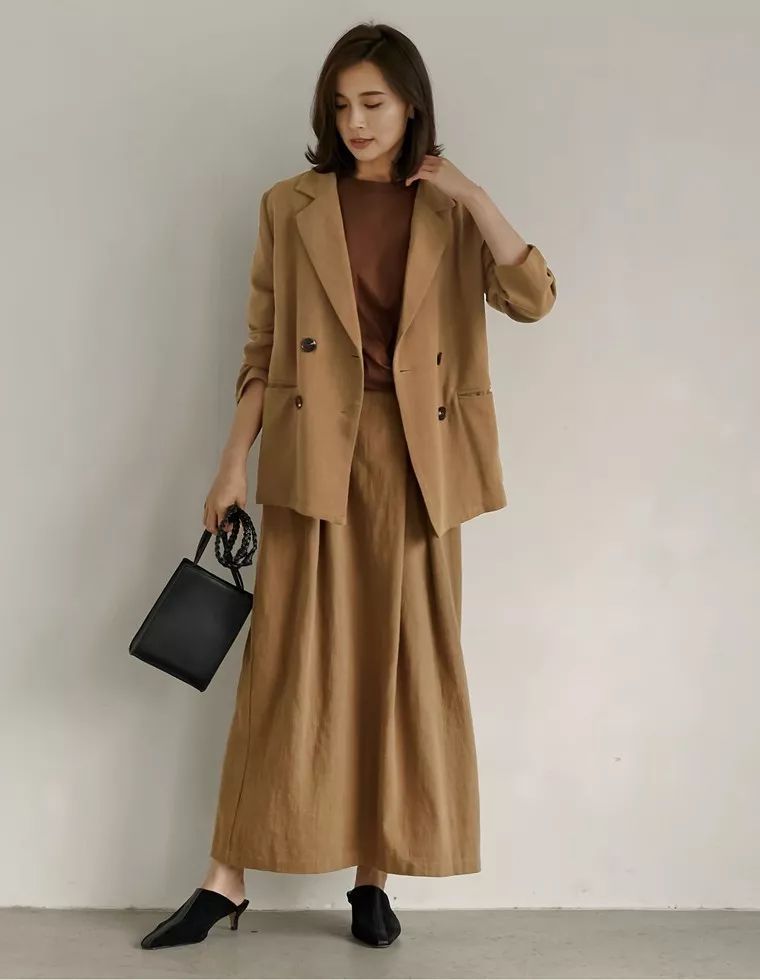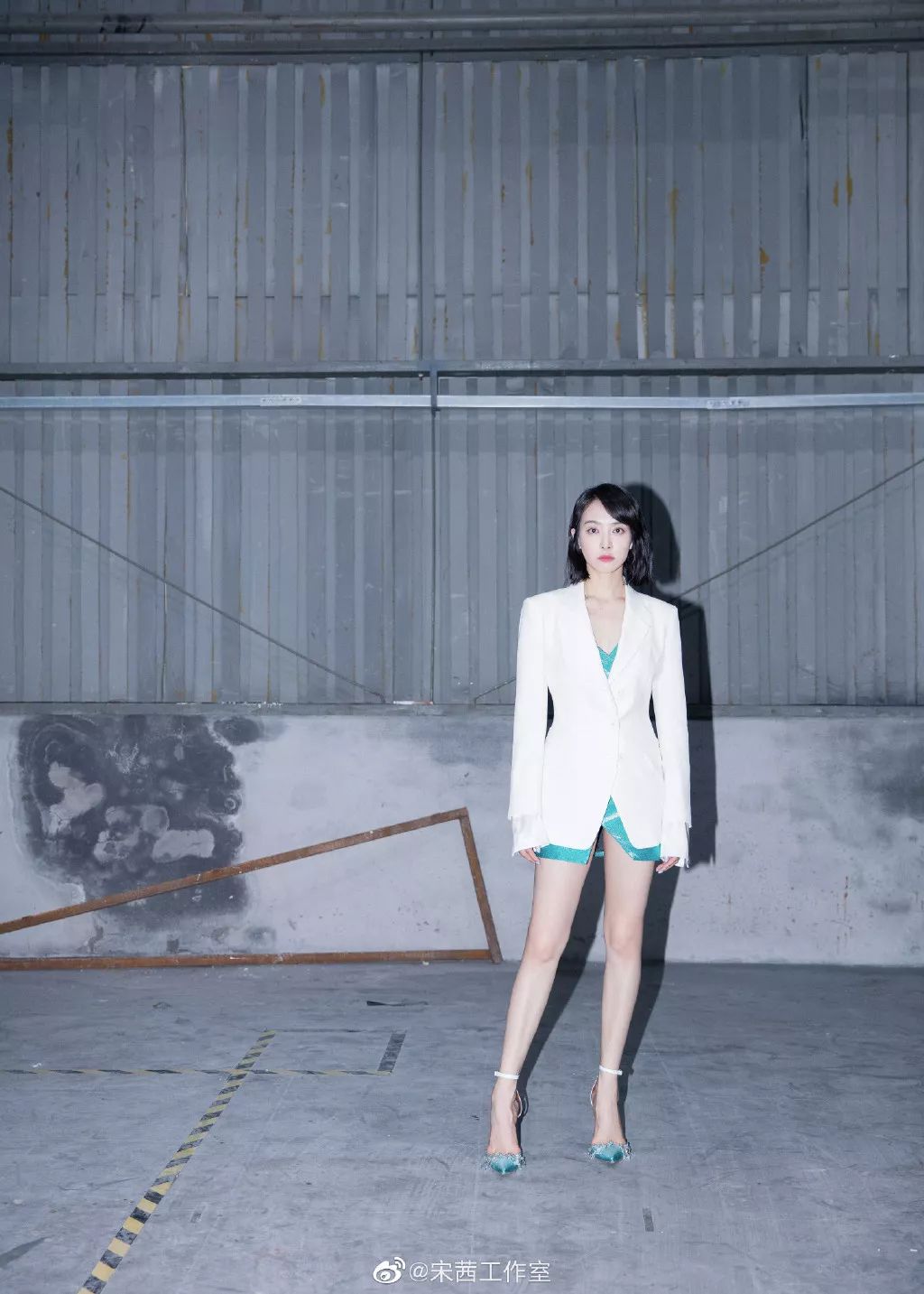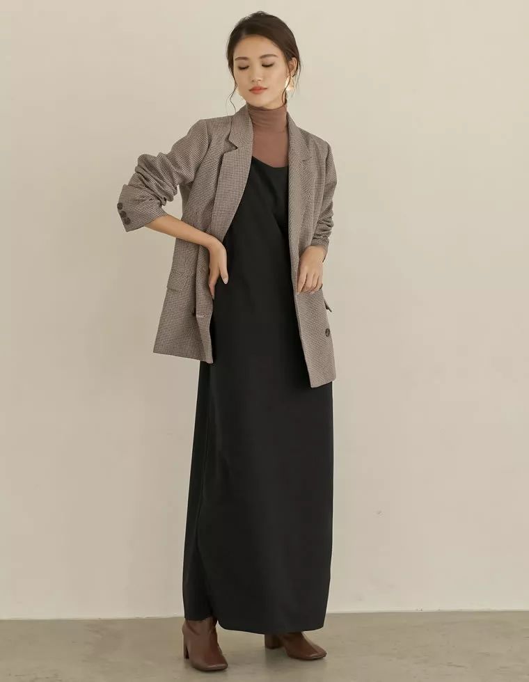 黑色套装内搭也是黑色,把帅气利落发挥到满分!