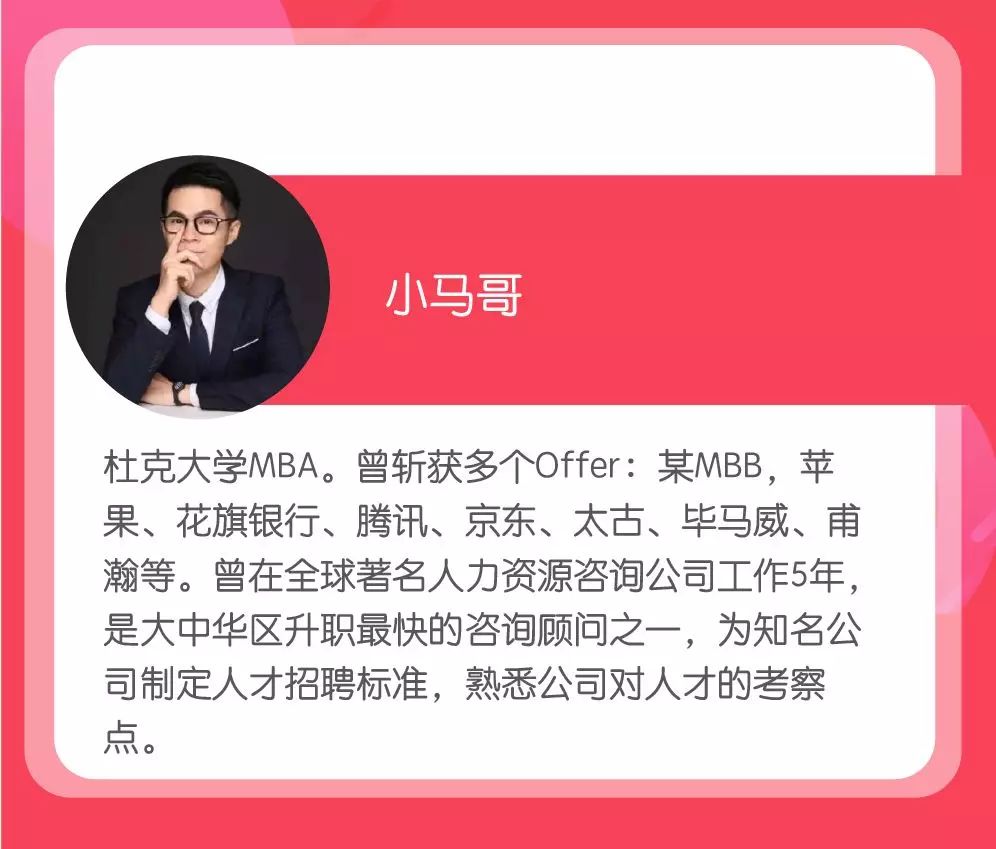 (她曾帮助学生拿到过麦肯锡、普华永道、安永、毕马威、德勤、玛氏、阿里等公司的offer,有着丰富职业辅导经验)
