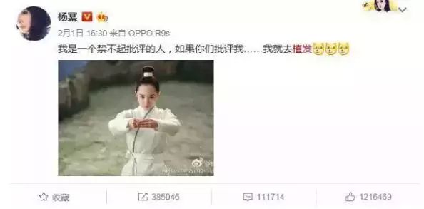 但万万没想到,大幂幂的段位不是一般的高,直接在微博上自嘲说:我是一个禁不起批评的人,如果你们批评我,就去植发。