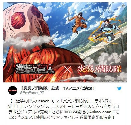 比如《进击的巨人》和《炎炎消防队》在一起玩过“巨人消防队”——