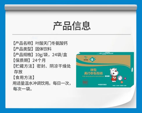 叶酸·天门冬氨酸钙是氨基酸螯合钙中的一种,它是一种具有生物活性结构的有机酸钙。