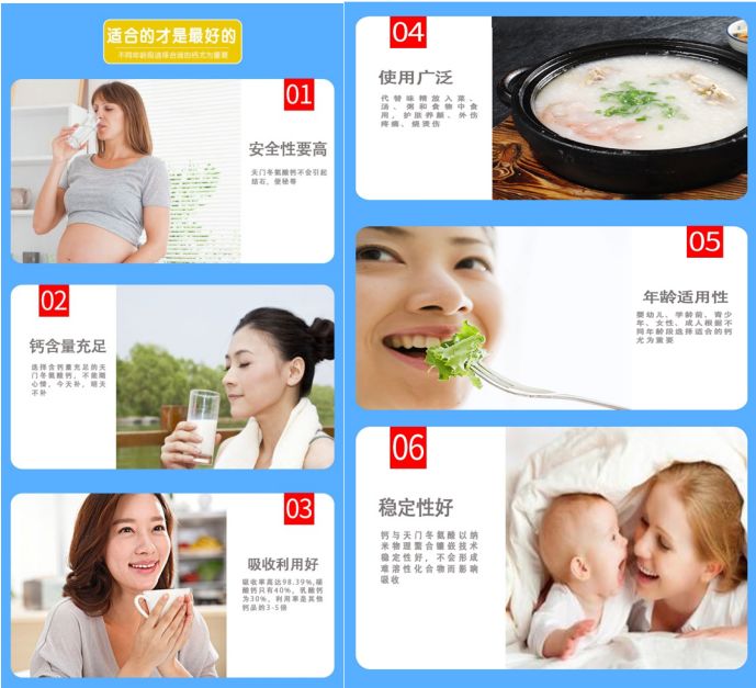 采用先进的纳米螯合技术,结构非常稳定,可以摆脱肠胃内各种成分对营养元素吸收的干扰。并且根据人体吸收的原理,在人体外已经实现螯合,不需要VD、VC等其他营养素的辅助就能被人体充分吸收。叶酸·天门冬氨酸钙属于现今营养强化剂中最新一代的产品。