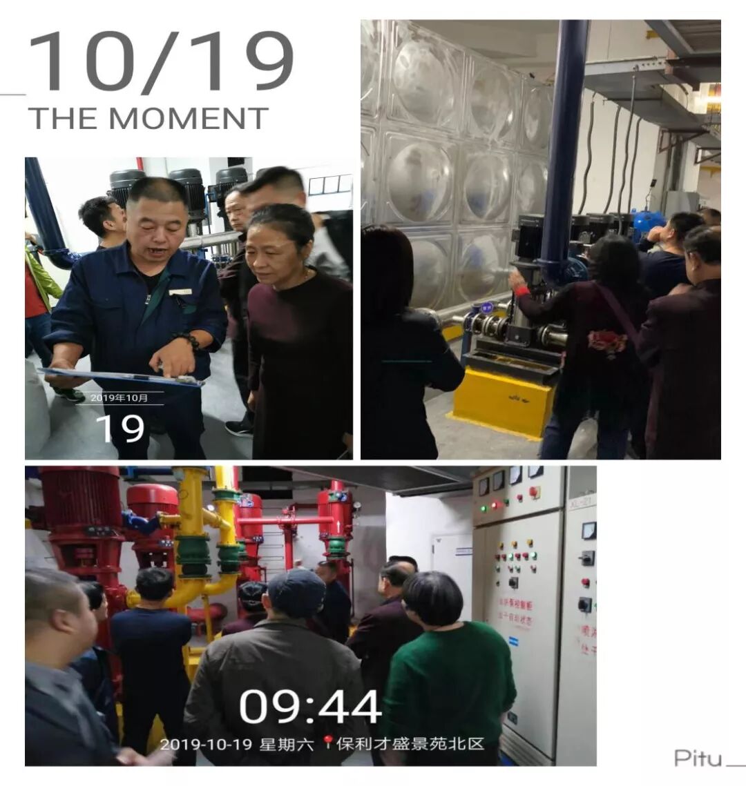 参观过程中,工程管理人员全程悉心讲解,向业主代表介绍水泵房、配电室、电梯机房的基础设施和日常维护。业主代表对工程管理人员每日两次的例行巡查、精确记录、维修保养工作给予了高度的肯定。
