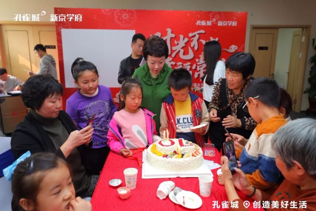 老寿星们在生日会上欢声笑语不断,他们共同回忆起各自的人生经历,讲述多年来的生活变化,从小家变化感受到国家发展,见证祖国70年来翻天覆地的变化。孔雀城·新京学府借中华人民共和国成立70周年之际,通过形式新颖、隆重热烈、简朴温馨的集体生日会,祝愿老业主们长命百岁,幸福安康!再与我们一起见证新中国的百年华诞!见证孔雀城·新京学府的幸福生活!
