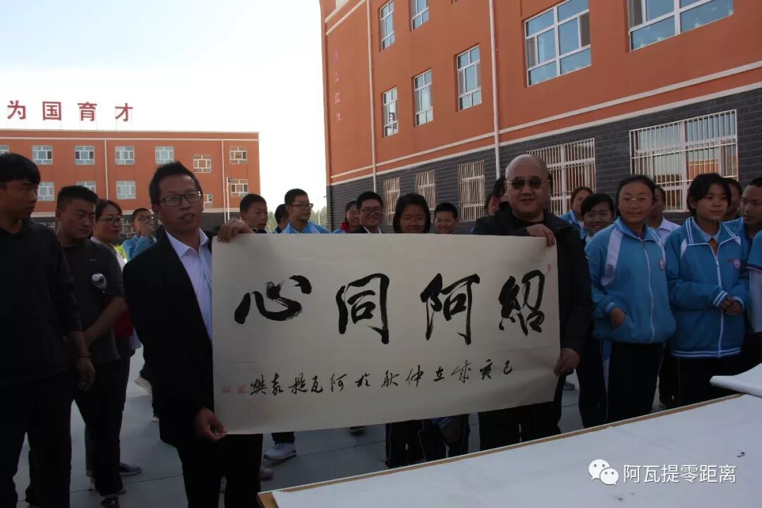 仪式开始,绍兴市援疆指挥部纪委书记、副指挥长许新康致辞,表达对县第二中学期许与祝福!援疆教师唐建锋老师向县第二中学赠送公益捐赠书画作品牌匾;随后进行了现场笔会活动,活动中,艺术家们现场挥毫泼墨,为二中师生留下自己的墨宝。