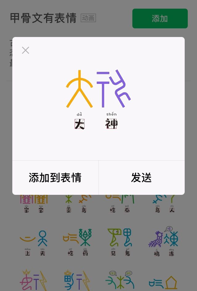 与此同时,一批甲骨文书法和实物走出象牙塔,使学者的研究成果走近大众,也兴起了民间破译甲骨文的热潮。比如,打开微信,搜索甲骨文表情包,便出现了各式各样以甲骨文为素材制作的有趣动图。