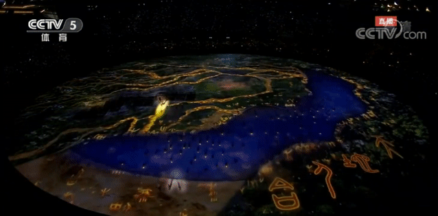 ▲在《和合之道》部分表演中,现场出现竹简、战车、太极、司南、长城等与古代军事思想有关的元素。首先出现的竹简既是我国较早的文字记录形式,也是最早兵书的呈现方式。
