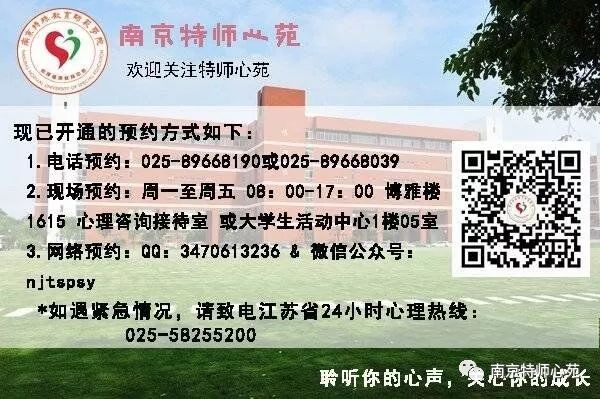 *如遇紧急情况,请致电江苏省24小时心理热搜线:025-58255200