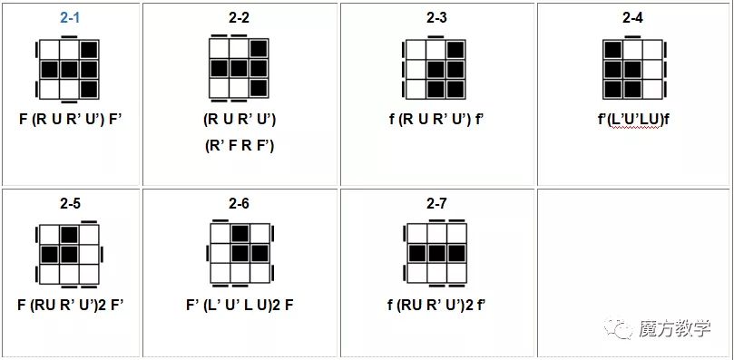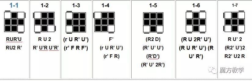 第一组是7个十字公式 这个也是必须要学会的,第二组就是RUR'U'以及镜像公式的运用 第三组是点状公式 第四组也很简单。