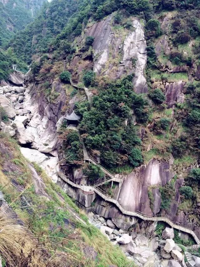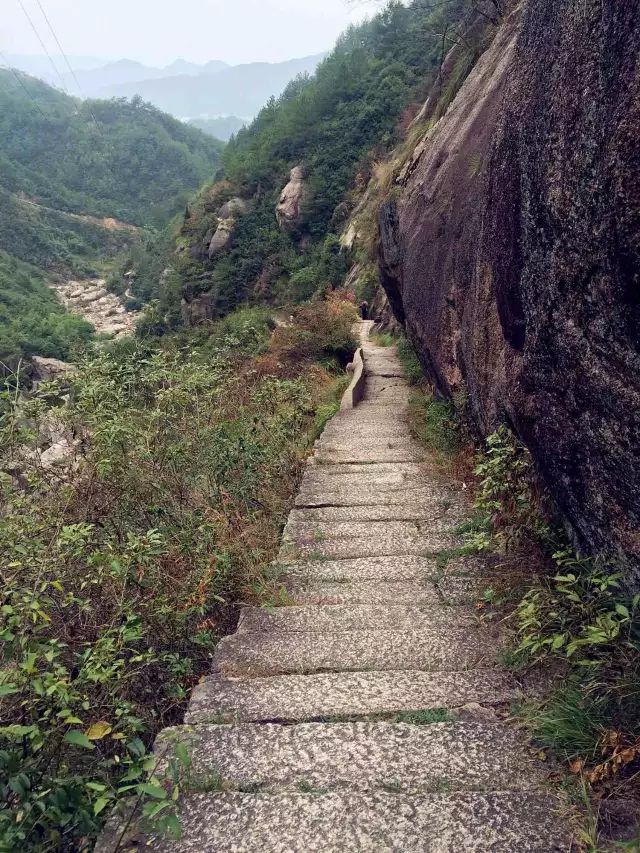 午后。我们继续出发,此后一路都是下坡,经过上雪堂,下雪堂,大约16:00 左右到达江南第一关,这里也是徽杭古道的精华地段,万丈悬崖上凿出的石板栈道,气势恢宏。下关口,很快就把徽杭古道全部走完了。