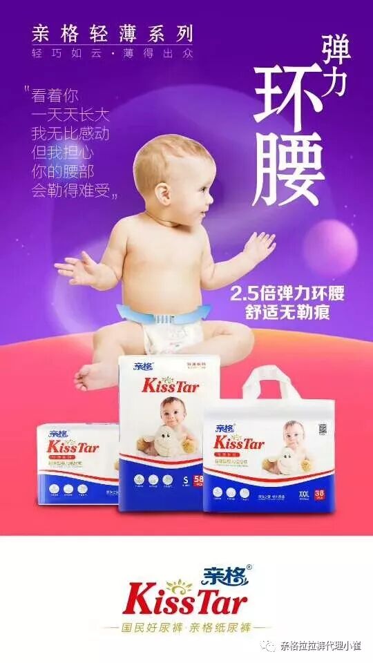 亲格(Kiss Tar)系列产品-为联盛妇幼母婴用品有限公司品牌,成立于2013年4月9日,注册资金五百万元整。是一家集研发、设计、生产、销售、售后服务为一体的婴儿卫生用品专业型企业。公司实施多品牌发展战略,亲格品牌一直处于微商尿裤领先品牌,代理商遍布全国各地。