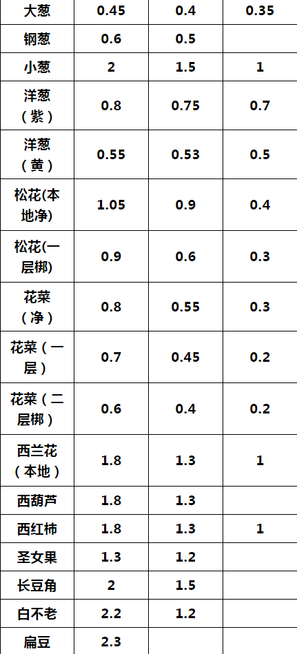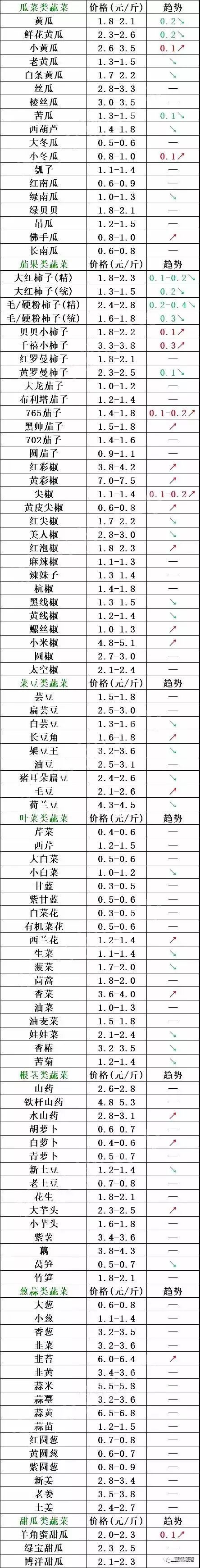 2019年10月20日河北邯郸、山东寿光蔬菜价格