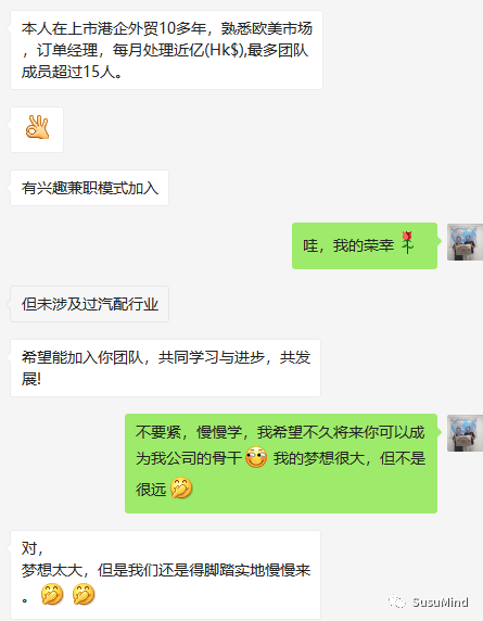 因为我做外贸这几年,遇上了很多很不错的外贸小伙伴,他们经验丰富,很多三观与我相同。很多都想和我一起共事。但由于时间,地域等各种因素,让我们实现不了