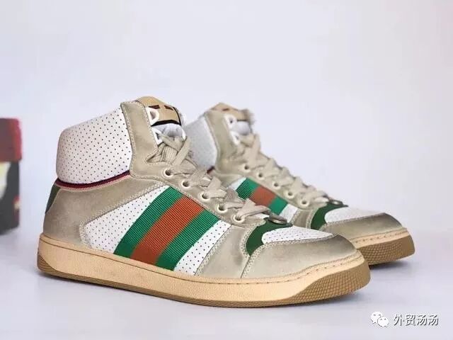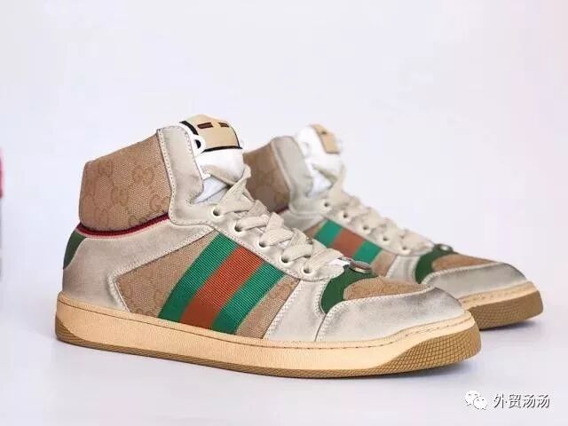 Gucci高帮脏脏鞋系列帆布鞋板鞋 秋冬新款男士高帮休闲鞋! 做旧效果 专柜同步 复古学院风款式和怀旧运动服风格面料!