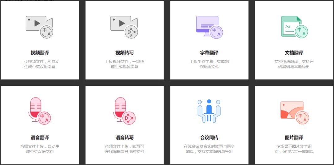 比如:视频转文字,语音转文字,图片转文字,文档翻译等等