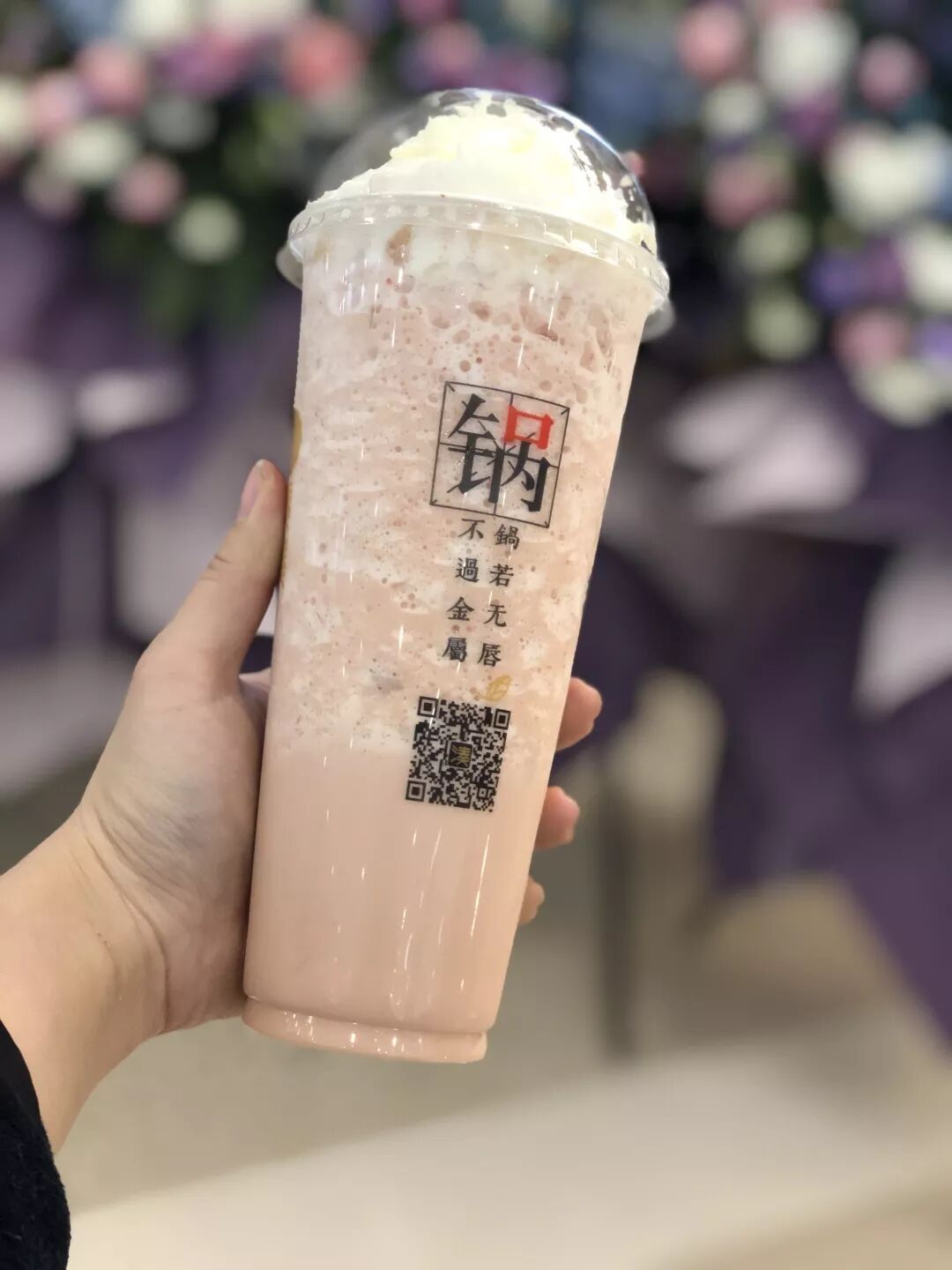 要说凑凑家除了火锅其实最出名的就是奶茶,点了两款,一款草莓冰沙一款大红袍奶茶。