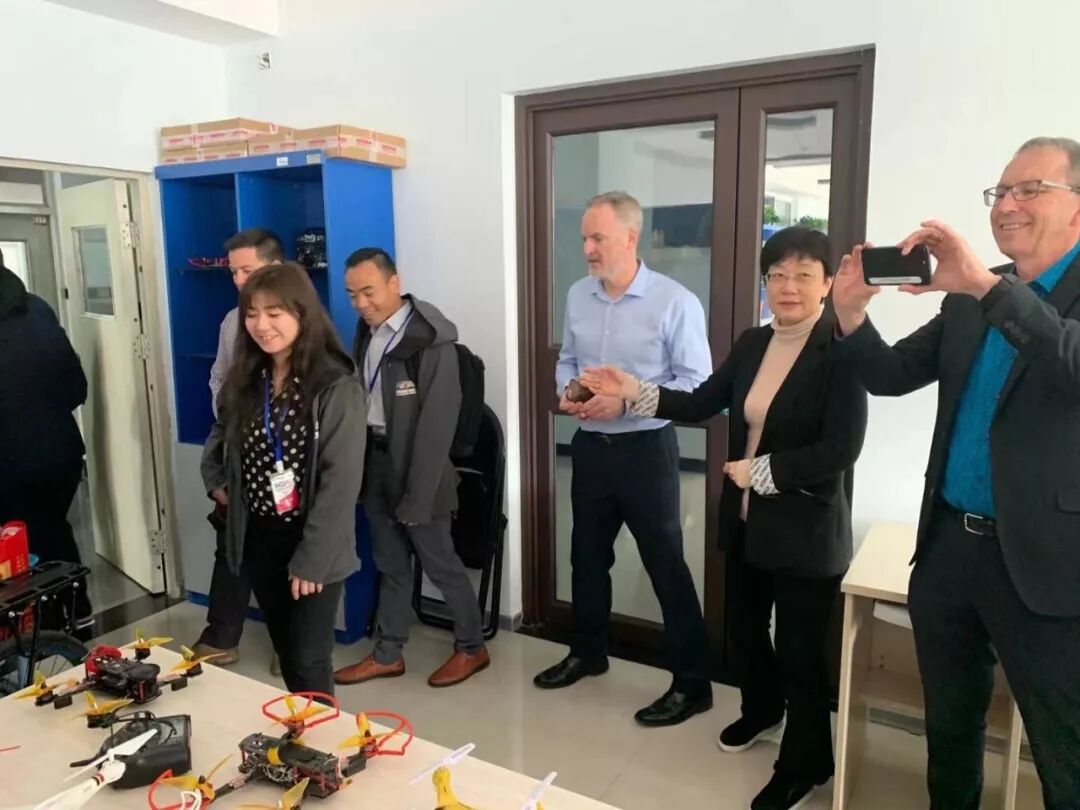 在中方老师的指引下,校长团和NZTA一行来到沈阳市外国语学校的特色课堂,参观无人机教学区和地理模型教室。对于中方多样的授课方式和丰富的课堂内容,新西兰校长赞不绝口,希望能够将所见到的中国教育形式带回新西兰,让本国学生能够进一步拓宽知识,掌握更多学习技巧。