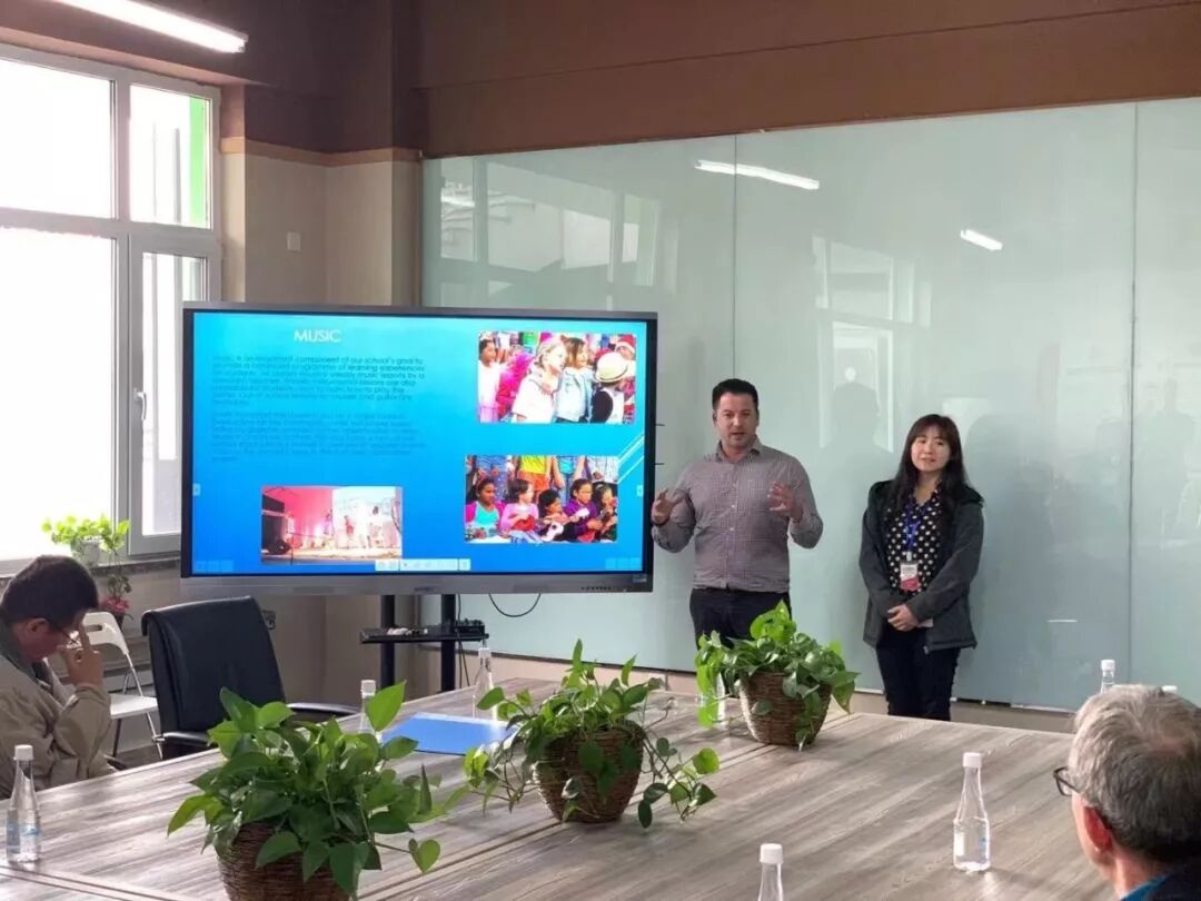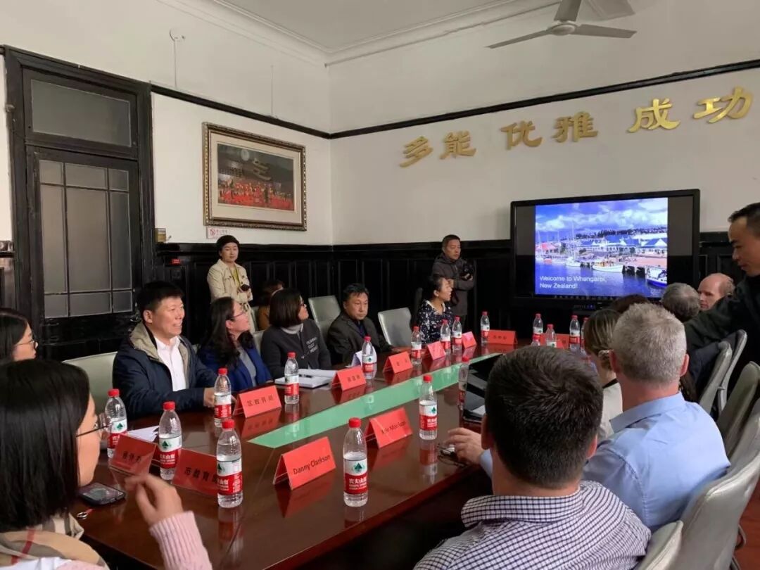 欣赏完同学们优美动听的合唱之后,新西兰校长团和NZTA受邀走进学校会议室,在这里中新双方分别通过视频展示了各自办学的特点和取得的成绩。