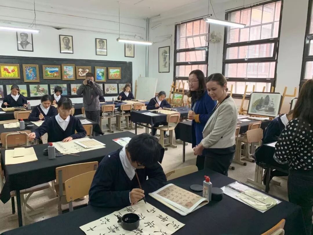 在中方校领导的带领下,新西兰校长团分别来到学校历史博物馆和奖杯收藏室进行参观。随后,大家继续对同泽女中的日常教学进行观摩学习。在学校的音乐、舞蹈、跆拳道和国画教室进行参观时,新西兰校长们深入了解中方学校的教育内容和授课方式。