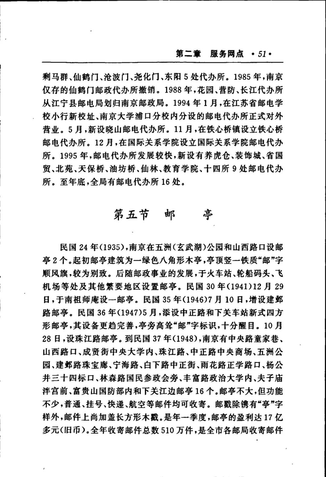 《南京邮政局志》中的邮电局所、代办所、邮亭