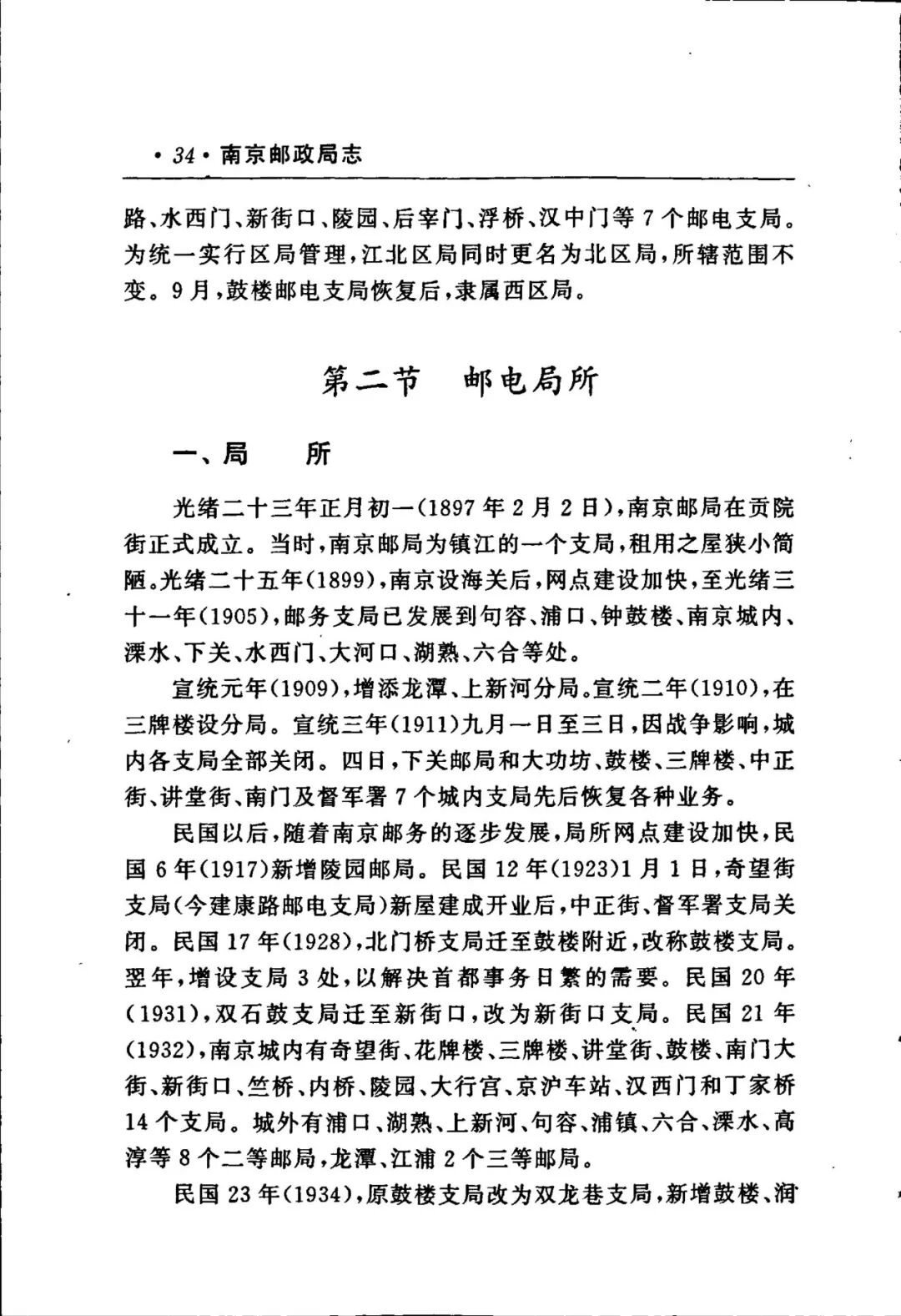 《南京邮政局志》是由《南京邮政局志》编纂委员会编纂,2000年8月江苏人民出版社出版的邮政志书,是研究地方邮政史的权威参考资料。现将其中的邮电局所、代办所、邮亭三节摘录如下,供大家参考。