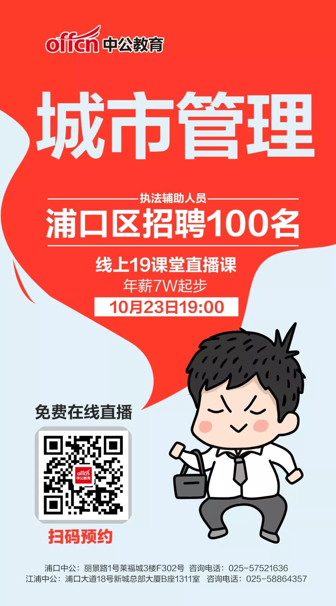 事少钱多离家近南京市现招执法辅助人员100人大专可报,不限户籍,年薪7W 起10月23日晚19:00,公告解读长按下方图片,识别二维码进入直播间