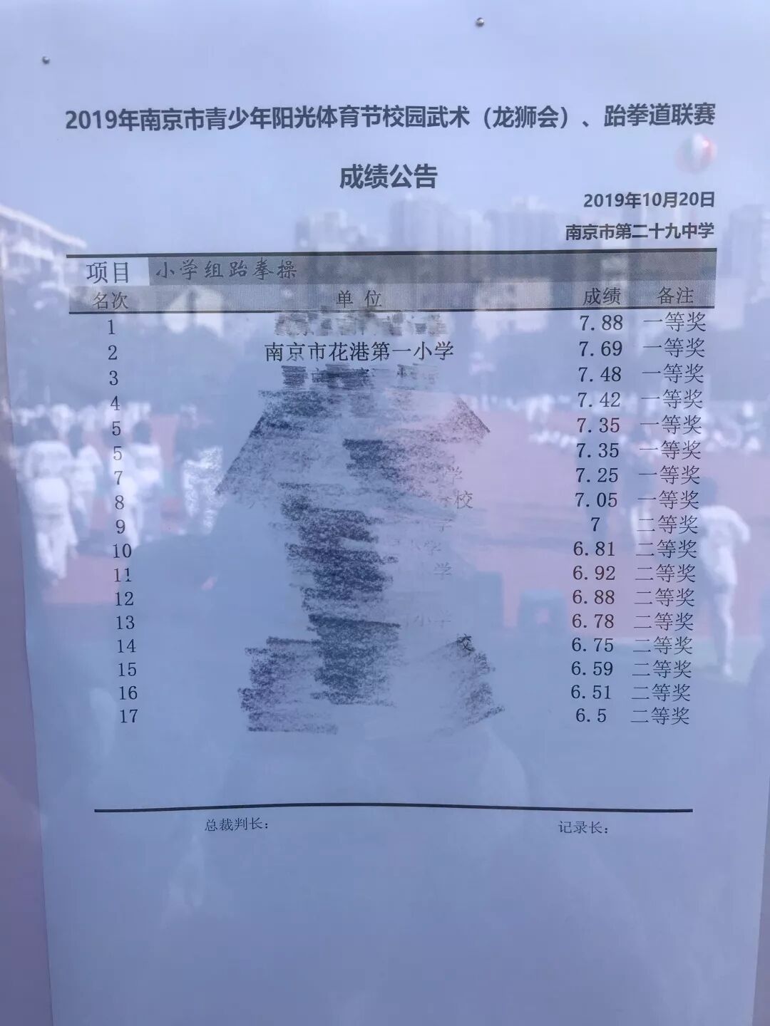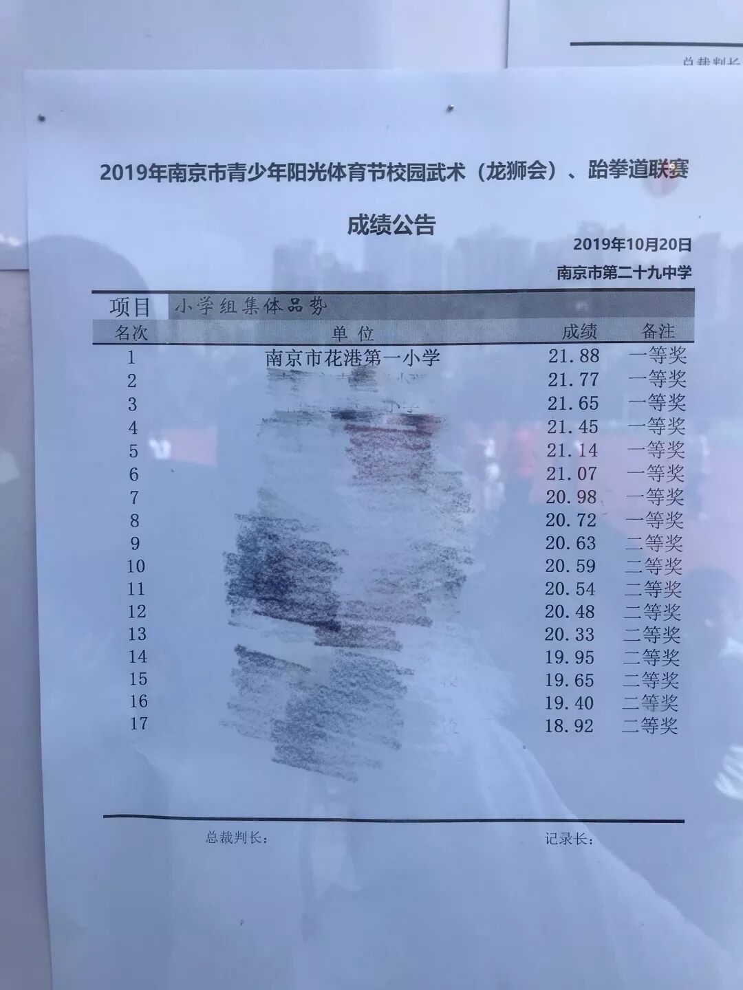 在刚刚结束的“2019南京市阳光体育节校园跆拳道联赛”中,花港第一小学代表队再次荣获跆拳道集体品势、集体跆拳舞比赛两个一等奖。其中“跆拳道集体品势”斩获一等奖第一名!