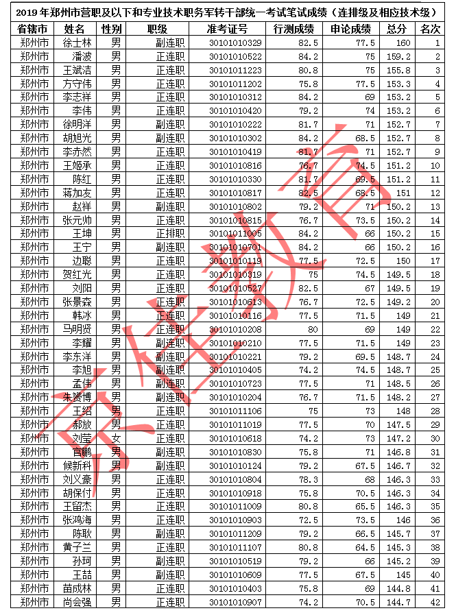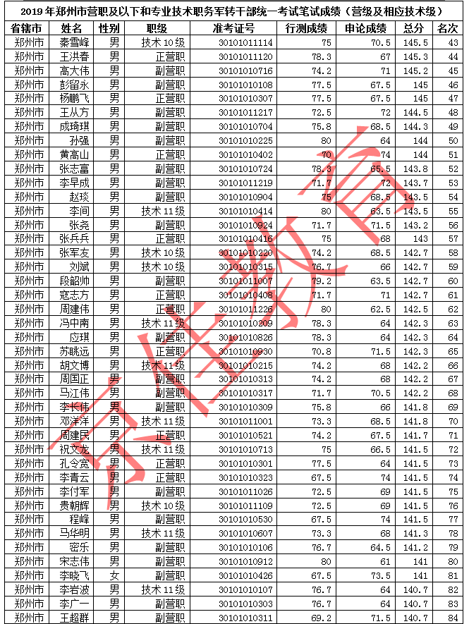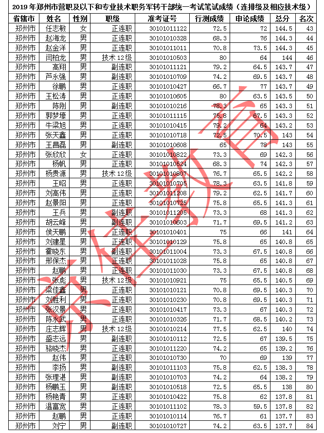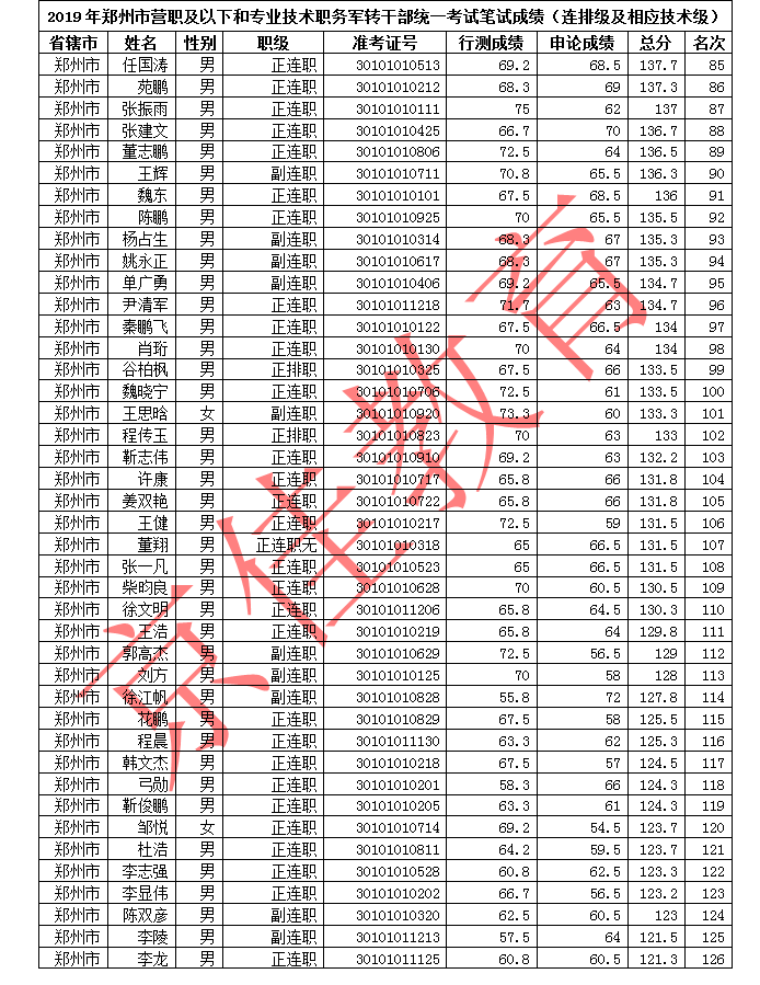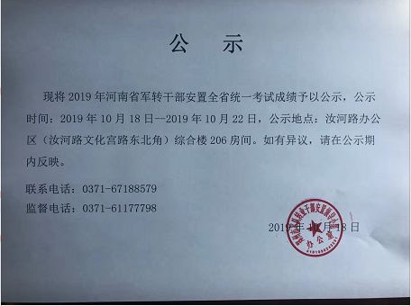 快!2019河南军转干部安置考试成绩(郑州市)公布!