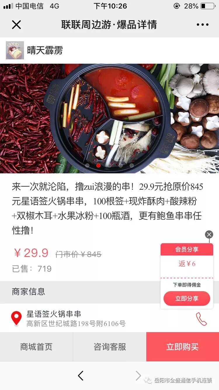 这笔火锅订单有佣金6元,注册以后不论是自己购买还是推荐朋友购买都能拿佣金6元。