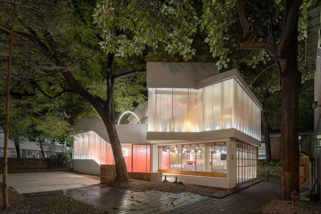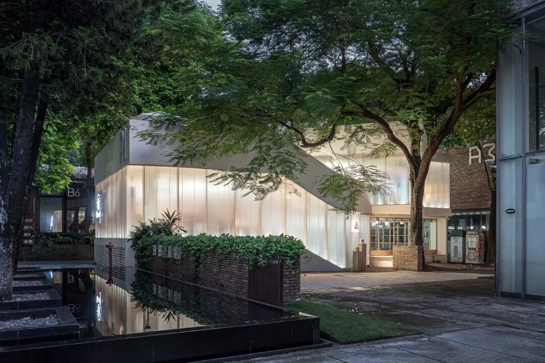 “Onmyoji阴阳师主题店”毗邻广州塔位于TIT创意园内,在凤凰花树的遮蔽下隐于闹市中,此次项目包含建筑改造与室内空间设计,我们希望建立一个充满可能性的空间,围绕IP结合咖啡店、酒吧、周边零售店、游戏文化展示于一体的线下体验空间,将游戏和年轻人的生活场景真正连接起来,为用户带来更好的文娱内容和社交体验。