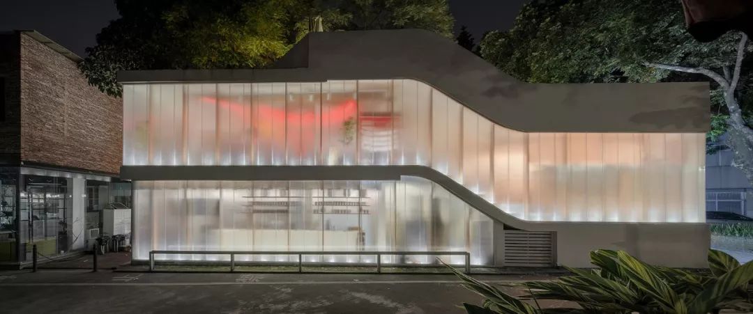 依作法而区划一定之地域,它是地形结印术的一种最早是阴阳师用来保护圣域的方法。建筑为四面通透的跃层式结构,外立面由阳光板结合灯光改造成巨大的发光体,独立于周遭环境。恰似阴阳师设下的光之结界,通过灯光控制实现结界的呼吸和异色效果,结合游戏玩法和主题让顾客与建筑互动。将结界作为三次元与二次元的连接点。