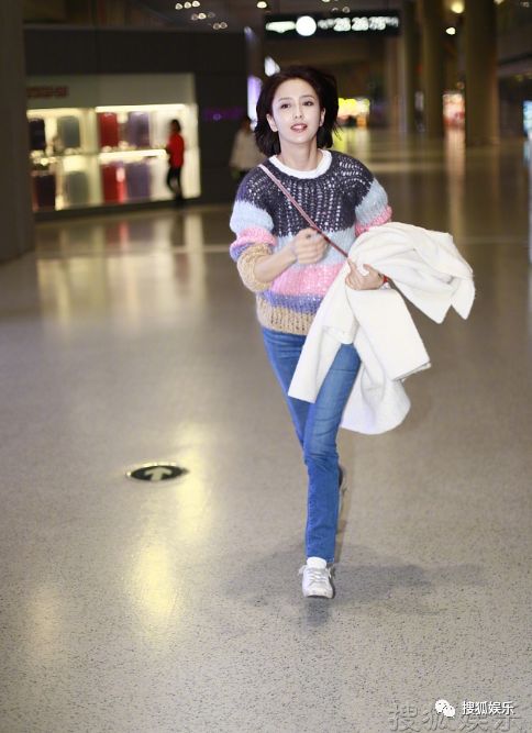 话说很少见到佟丽娅有狂野的一面吧,为了赶飞机头发都跑到飘起来了。