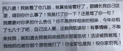 如今男方一系列的威胁骚扰举动,给女方的生活造成了极大的困扰,爆料人想请各位网友们帮忙出出主意!究竟要怎么样才能摆脱这个相亲男?