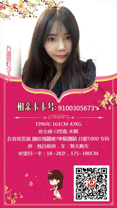请将个人姓名、年龄、身高、职业、择偶要求、联系方式及自我介绍,发给玉林相亲网红娘客服。至少附3张个人照片(生活照、写真照均可)如何快速脱单快来玉林相亲网,本平台聚集有大量的玉林优质单身男女,本平台会员有上班族、个体工商户、企事业人员、公务员等