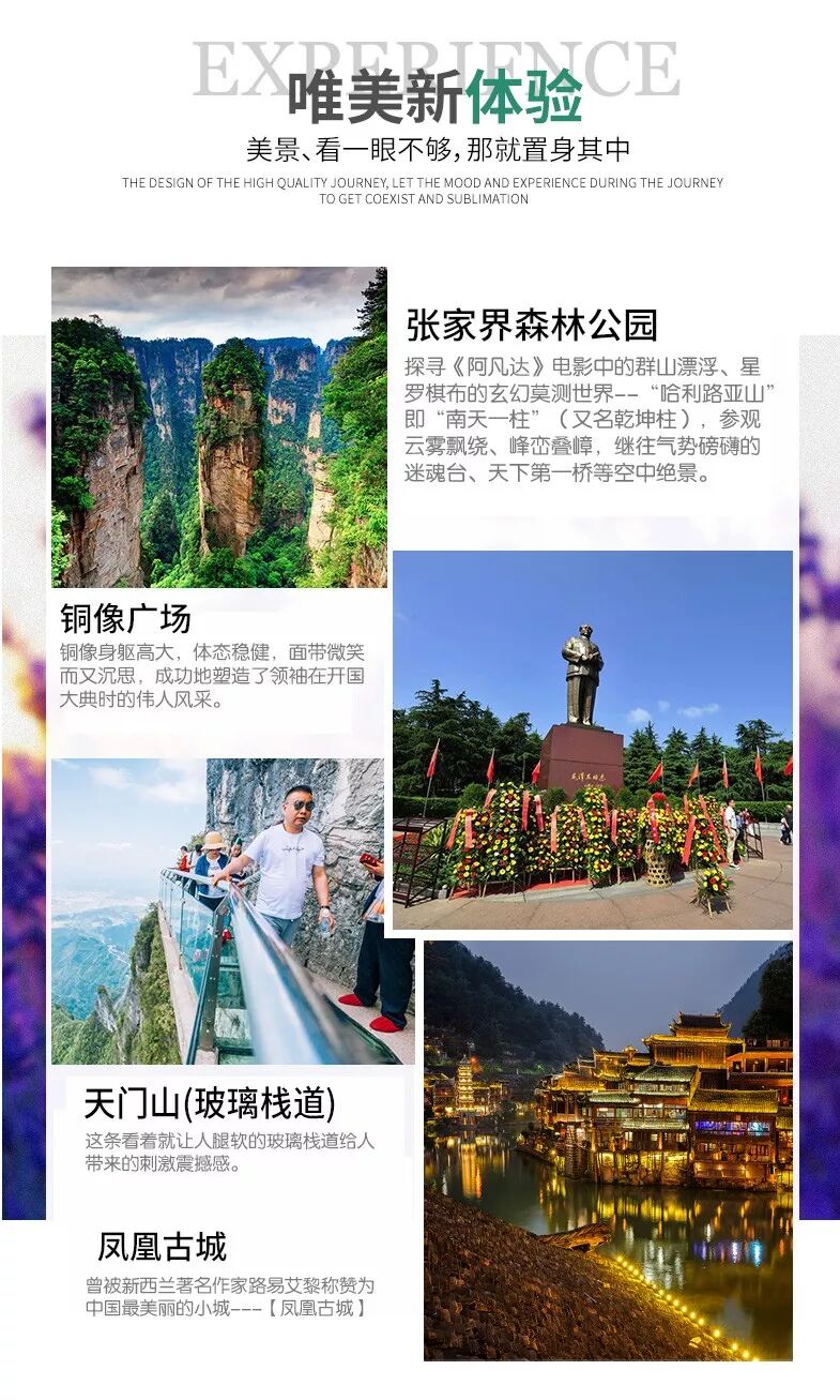 3、【交通】:景区间空调旅游车;接送交通工具为旅游车、民航大巴等;福州-长沙往返机票或福州/莆田/三明/南平-长沙往返高铁高铁二等座。