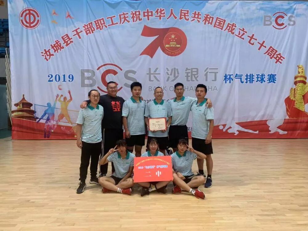 汝城二中获县干部职工(长沙银行杯)气排球赛一等奖