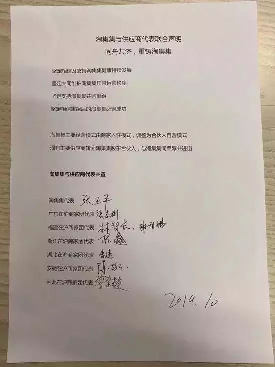 10月16日消息,日前,社交电商淘集集与供应商代表签署了一份联合声明,确定了淘集集的重组方向。