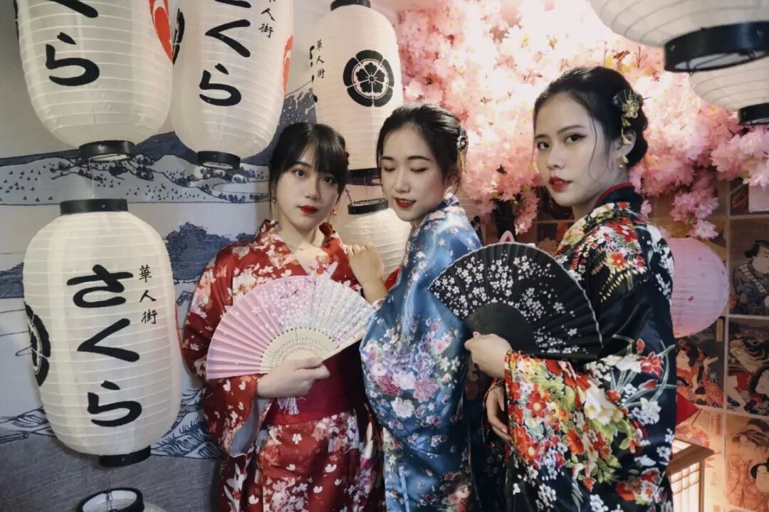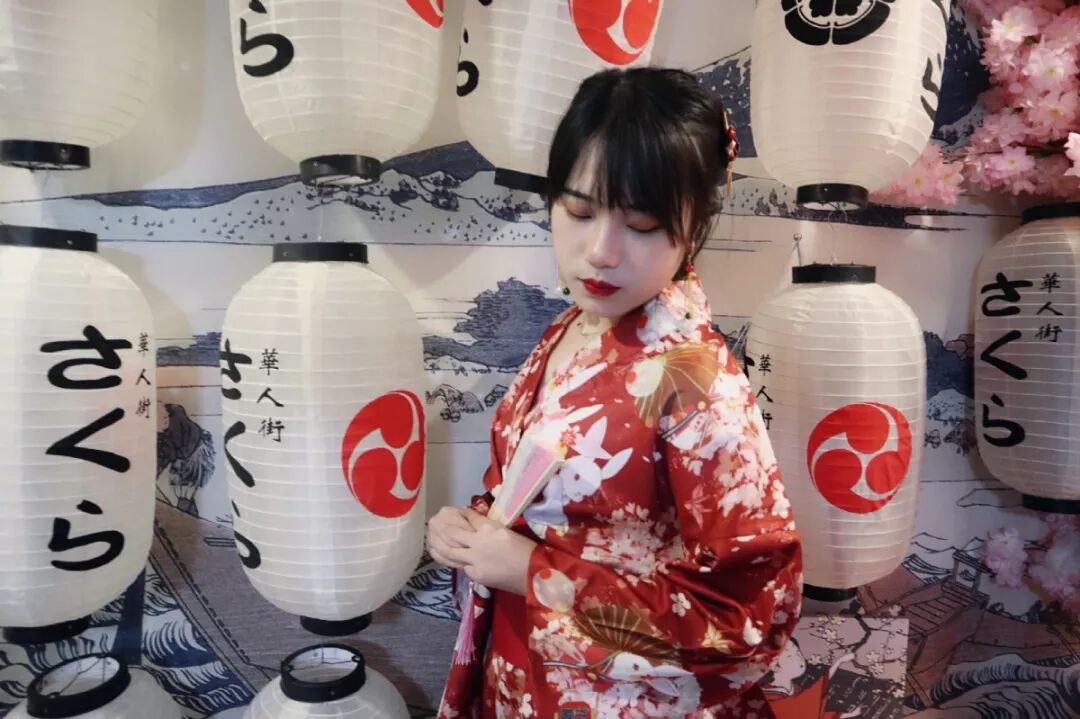 换装馆由两层公寓组成,第一层主要是复古风格,比较适合用来拍旗袍、礼服等;第二层有两个房间,一个房间适合拍古装和和服,一个房间适合拍婚纱和礼服;同时,走廊里有美丽的樱花和灯笼等等,满满的异域风格!