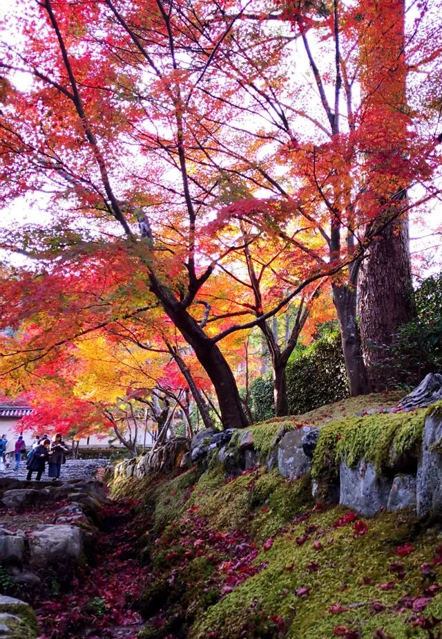 从古代起,日本人就把秋天看红叶叫做“红叶狩”。狩,狩猎。在日本人眼里,红叶有点儿像一头毛色华丽的野兽,当它嗅到一丝秋天的气息,就会以平均每天27公里的速度从北到南跑遍全日本,仅需50天左右,就能把这个狭长的岛国笼罩在它的影子里。