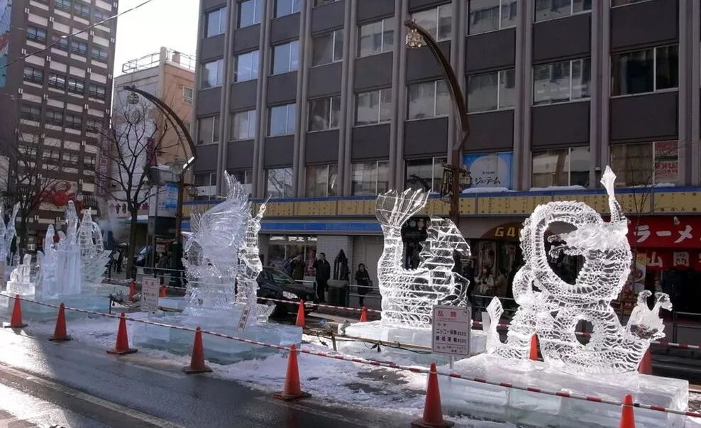 札幌雪祭是日本最大的冬季庆典之一,虽然天气很冷,但是日本会举办各种活动,展出极具震撼人心的冰雕雪像。大通公园里的各色小吃,玩上一圈,全身都暖和了。