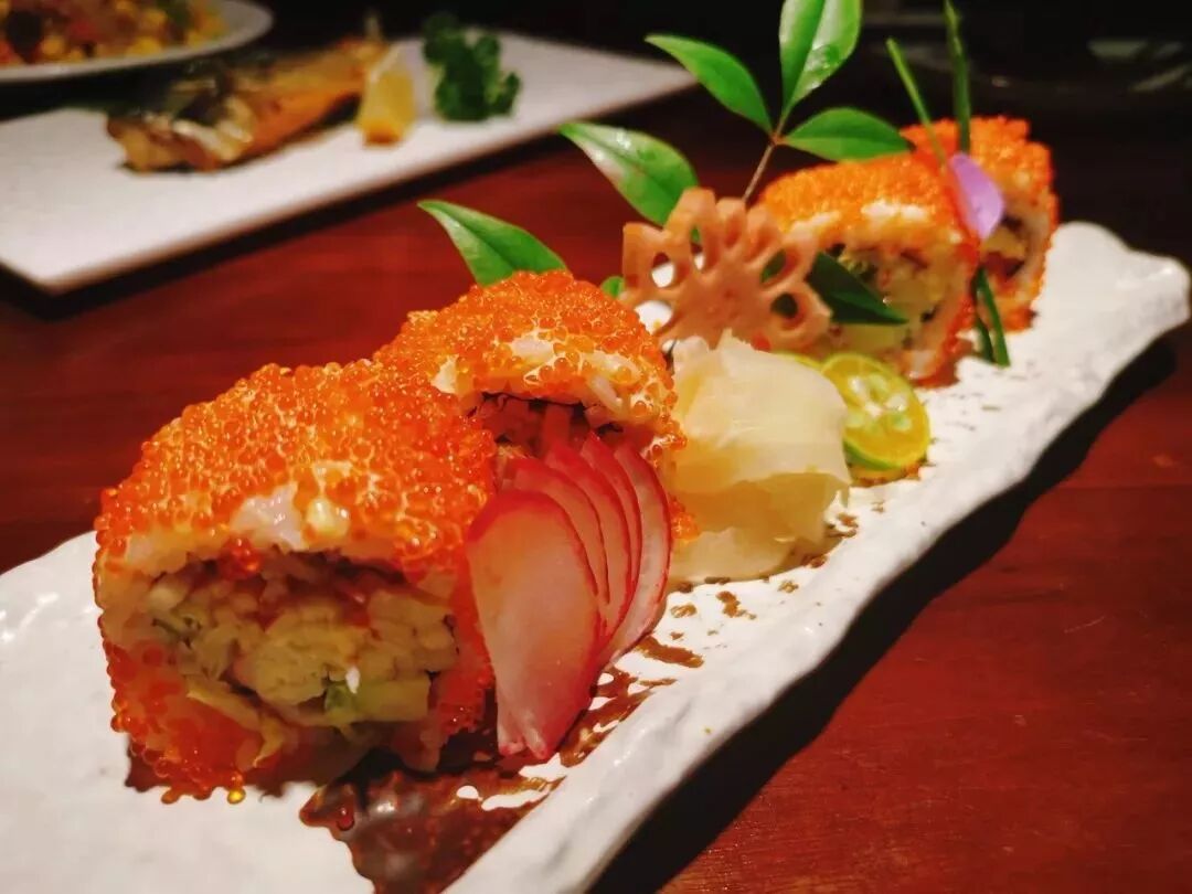 大明虾天妇罗、加州卷、蟹籽蔬菜沙拉……