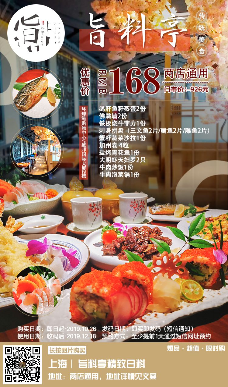 旨料亭精致日料(四川北路店)上海市虹口区四川北路1318号盛邦国际大厦2楼(距离10号线四川北路站3号口步行80米)