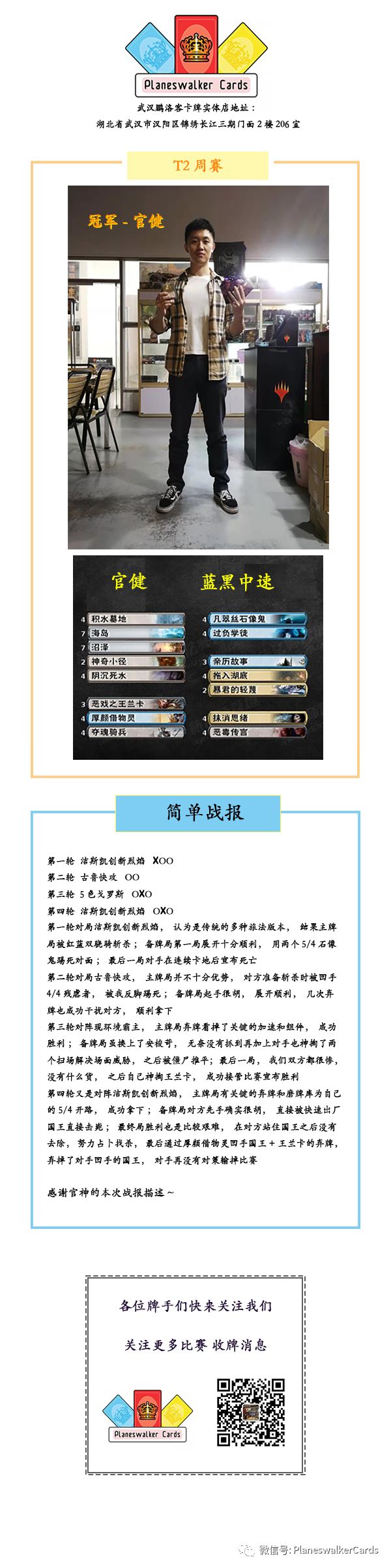 武汉鹏洛克卡牌:10月19日T2店赛由官健 席卷